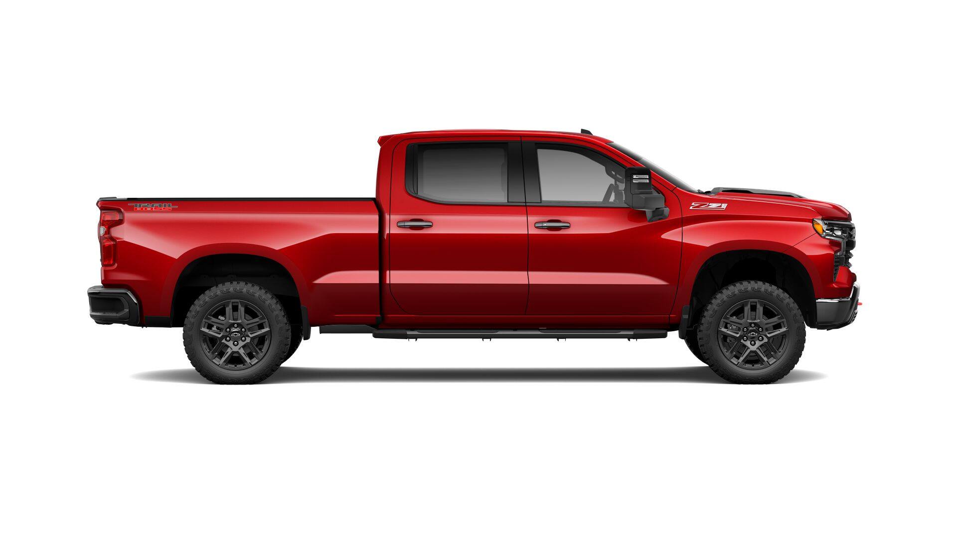 2026 Chevrolet Silverado 1500 LT Trail Boss 4D Crew Cab EcoTec3 5.3L V8 4WD 10-Speed Automatic Radiant Red Tintcoat 10-Way Power Driver Seat w/Lumbar, 12.3 Multicolor Reconfigurable Digital Display, 120-Volt Bed Mounted Power Outlet, 120-Volt Interior Power Outlet, 2 USB Data Ports, 3.23 Rear Axle Ratio, 6-Speaker Audio System, Air Conditioning, Apple CarPlay/Android Auto, Auto-Locking Rear Differential, Automatic Emergency Braking, Automatic temperature control, Bluetooth® For Phone, Chevytec Spray-On Black Bedliner, Cloth Seat Trim, Convenience Package, Convenience Package II, Dual Exhaust w/Black Exhaust Tips, Dual Rear USB Ports (Charge Only), Dual-Zone Automatic Climate Control, Electric Rear-Window Defogger, Electronic Cruise Control, Electronic Stability Control, Electronic Transmission Range Selector Shifter, EZ Lift Power Lock & Release Tailgate, Floor Mounted Center Console, Following Distance Indicator, Forward Collision Alert, Front Bucket Seats, Front LED Fog Lamps, Front Pedestrian Braking, Fully automatic headlights, Heated Driver & Front Outboard Passenger Seats, Heated Power-Adjustable Trailering Mirrors, Heated Steering Wheel, Heavy-Duty Air Filter, High Gloss Black Mirror Caps, Hill Descent Control, Hitch Guidance, Hitch Guidance w/Hitch View, In-Vehicle Trailering System App, Integrated Trailer Brake Controller, IntelliBeam Automatic High Beam On/Off, Keyless Open & Start, Lane Keep Assist w/Lane Departure Warning, LED Cargo Area Lighting, Manual Tilt/Telescoping Steering Column, OnStar Services Capable, Performance Red Recovery Hooks, Power Sliding Rear Window w/Rear Defogger, Power windows, Premium Bose 7-Speaker Sound System, Protection Package, Radio: Chevrolet Infotainment 3 Premium System, Rear 60/40 Folding Bench Seat With Storage, Rear step bumper, Rear Wheelhouse Liners, Remote keyless Entry, Remote Vehicle Starter System, Standard Tailgate, Suspension Package, Theft Deterrent System (Unauthorized Entry), Traction control, Trailering Package, Universal Home Remote, Wheels: 20 x 9 High Gloss Black Painted Alum, Wi-Fi Hot Spot Capable, Wireless Charging, Wrapped Steering Wheel. Not all buyers will qualify for all rebates. Contact dealer for eligibility. Price includes: $1250 - Chevrolet Trade Assistance Bonus Cash Program. Exp. 02/02/2026 $1500 - GM Bonus Cash. Exp. 02/02/2026 $3250 - Chevrolet Consumer Cash Program. Exp. 02/02/2026