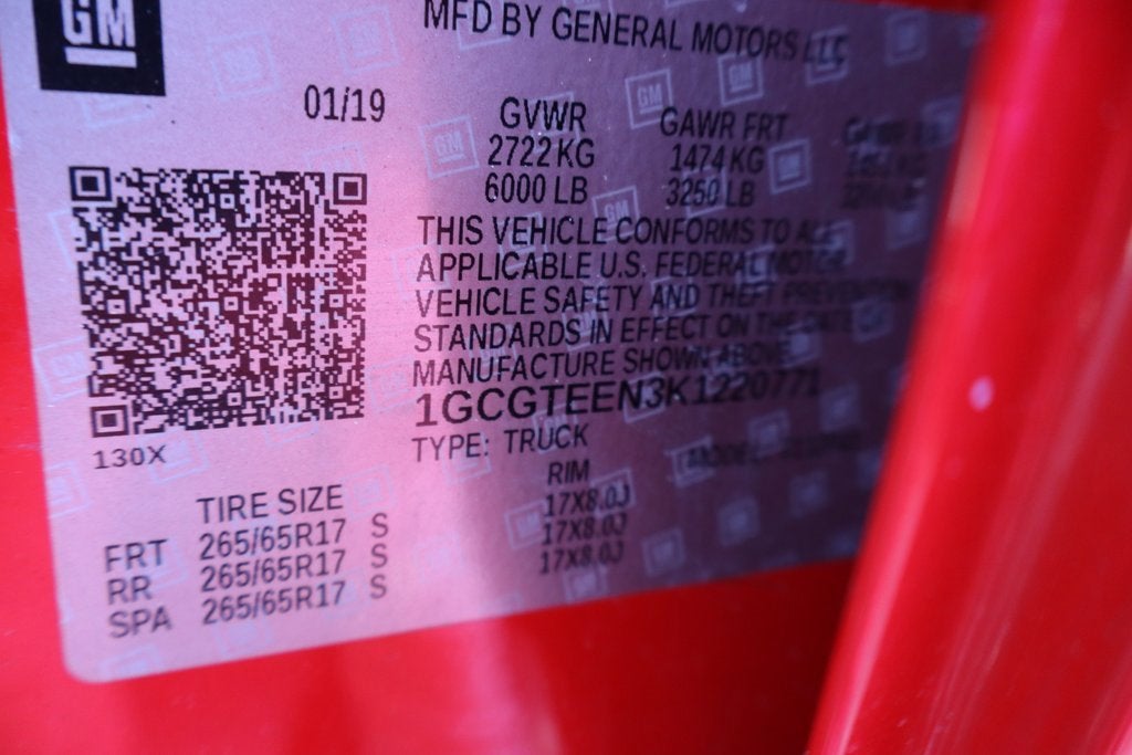 2019 Chevrolet Colorado ZR2 4D Crew Cab Red Hot V6 8-Speed Automatic 4WD 3.42 Rear Axle Ratio, 6-Speaker Audio System Feature, AEV Embroidered Headrests, AEV Front Bumper, AEV Rear Bumper, Alloy wheels, Apple CarPlay, Black Rear Bumpers, Black Spray-On Bedliner w/Chevrolet Logo, Chevrolet Grille, Colorado ZR2 Bison Edition, Driver 6-Way Power Seat Adjuster, Driver-Selectable Full-Locking Front Differential, Driver-Selectable Full-Locking Rear Differential, Electronic Stability Control, Exterior Parking Camera Rear, Front Contoured Floor Mats, Front Fog Lamps, HD Radio, Heated door mirrors, Heated Driver & Front Passenger Seats, Heated steering wheel, Heavy-Duty Trailering Package, Integrated Trailer Brake Controller, Leather-Appointed Seat Trim, Off-Road Appearance Package, Power door mirrors, Power Driver Lumbar Control Seat Adjuster, Power Passenger Lumbar Control Seat Adjuster, Power passenger seat, Power windows, Preferred Equipment Group 4ZR, Radio: Chevrolet Infotainment 3 Plus System, Rear Contoured Floor Mats, Rear step bumper, Rear window defroster, Remote keyless Entry, SiriusXM Radio, Speed control, Telescoping steering wheel, Tilt steering wheel, Tow/Haul Mode, Traction control, Trailering Assist Guideline Hitch Guidance, Wheel Moldings.