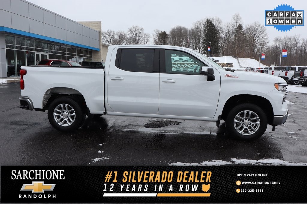 LT! 4X4! One-Owner! Z71 Off-Road Pkg! Remote Start! Clean CARFAX! 2023 Chevrolet Silverado 1500 LT LT1 4D Crew Cab Summit White EcoTec3 5.3L V8 10-Speed Automatic 4WD 10-Way Power Driver Seat w/Lumbar, 12.3 Multicolor Reconfigurable Digital Display, 120-Volt Bed Mounted Power Outlet, 120-Volt Instrument Panel Power Outlet, 170 Amp Alternator, 3.23 Rear Axle Ratio, 6-Speaker Audio System, All-Star Edition, Apple CarPlay/Android Auto, Auto-Locking Rear Differential, Automatic Emergency Braking, Automatic temperature control, Bluetooth® For Phone, Bumpers: chrome, Chrome Mirror Caps, Cloth Seat Trim, Convenience Package, Dual Exhaust w/Polished Outlets, Dual Rear USB Ports (Charge Only), Dual-Zone Automatic Climate Control, Electric Rear-Window Defogger, Electronic Cruise Control, Electronic Stability Control, EZ Lift Power Lock & Release Tailgate, Following Distance Indicator, Forward Collision Alert, Front Frame-Mounted Black Recovery Hooks, Front Pedestrian Braking, Fully automatic headlights, Heated door mirrors, Heated Driver & Front Outboard Passenger Seats, Heated Steering Wheel, Heavy-Duty Air Filter, Hill Descent Control, Hitch Guidance, Integrated Trailer Brake Controller, IntelliBeam Automatic High Beam On/Off, Keyless Open & Start, LED Cargo Area Lighting, Off-Road Suspension, Power door mirrors, Power windows, Radio: Chevrolet Infotainment 3 Premium System, Rear step bumper, Remote keyless Entry, Remote Start Package, Remote Vehicle Starter System, Theft Deterrent System (Unauthorized Entry), Traction control, Trailering Package, Wheels: 18 x 8.5 Bright Silver Painted Aluminum, Wrapped Steering Wheel, Z71 Off-Road Package.