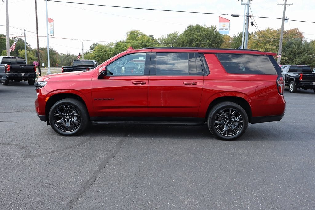 RST! 4WD! One-Owner! 3rd Row Seating! Leather Heated Seats! Bose Audio! Wireless Charging! Rear Seat Entertainment! Remote Start! Clean CARFAX! 2024 Chevrolet Suburban RST 4D Sport Utility Radiant Red Tintcoat EcoTec3 5.3L V8 10-Speed Automatic with Overdrive 4WD 4WD, Four-wheel Drive, 4X4, 3rd Row Seats, Third Row Seating, Automatic, Adaptive Cruise Control, Alloy Wheels, Aluminum Wheels, Android Auto, Apple CarPlay, Backup Camera, Bose High End Sound Package, Heated Rear Seats, Heated Seats, Heated Steering Wheel, Keyless Entry, Keyless Start, Lane Departure Warning, Leather Seats, Memory Seat, Multi Zone Climate Control, Parking Sensors, Premium Wheels, Rear Seat Entertainment, Remote Engine Start, Running Boards, Trailer Hitch, Wireless Charging, 10-Way Power Driver & Passenger Seat Adjusters, 1st & 2nd Row Color-Keyed Carpeted Floor Mats, 3rd Row 60/40 Power-Folding Split-Bench, Adaptive Cruise Control, Apple CarPlay/Android Auto, Auto-Dimming Inside Rear-View Mirror, Bose 9-Speaker Stereo Audio System Feature, Bright Front & Rear Door Sill Plates, Bumpers: body-color, Color-Keyed Carpeting Floor Covering, Driver & Front Outboard Passenger Airbags, Driver Alert Package, Electronic Stability Control, Enhanced Automatic Emergency Braking, Enhanced Driver Information Center, Floor Console w/Storage Area, Garage door transmitter, Hands-Free Rear Power Programmable Liftgate, HD Surround Vision, Heated 2nd Row Outboard Seats, Heated Driver & Front Passenger Seats, Heated Steering Wheel, Infotainment Display, Lane Change Alert w/Side Blind Zone Alert, LED Daytime Running Lamps, Luxury Package, Memory seat, Memory Settings, Memory Settings For Driver, Outside Heated Power-Adjustable Mirrors, Perforated Leather Seating Surfaces, Power Liftgate, Power Release 2nd Row Bucket Seats, Power Tilt & Telescopic Steering Column, Power windows, Preferred Equipment Group 1SP, Rear Cross Traffic Alert, Rear Pedestrian Alert, Rear window defroster, Rear window wiper, Remote keyless Entry, Remote Start, SiriusXM w/360L, Spoiler, Traction control, Tri-Zone Electronic Temp Control, Universal Home Remote, Wheel Locks (Set of 4) (LPO), Wheels: 22 x 9 6-Spoke Carbon Flash Metallic Alum, Wireless Charging, Wrapped Steering Wheel.